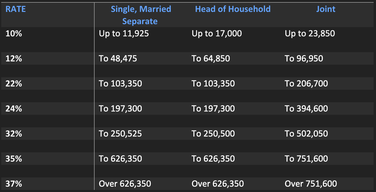 2025 tax brackets based on taxable income